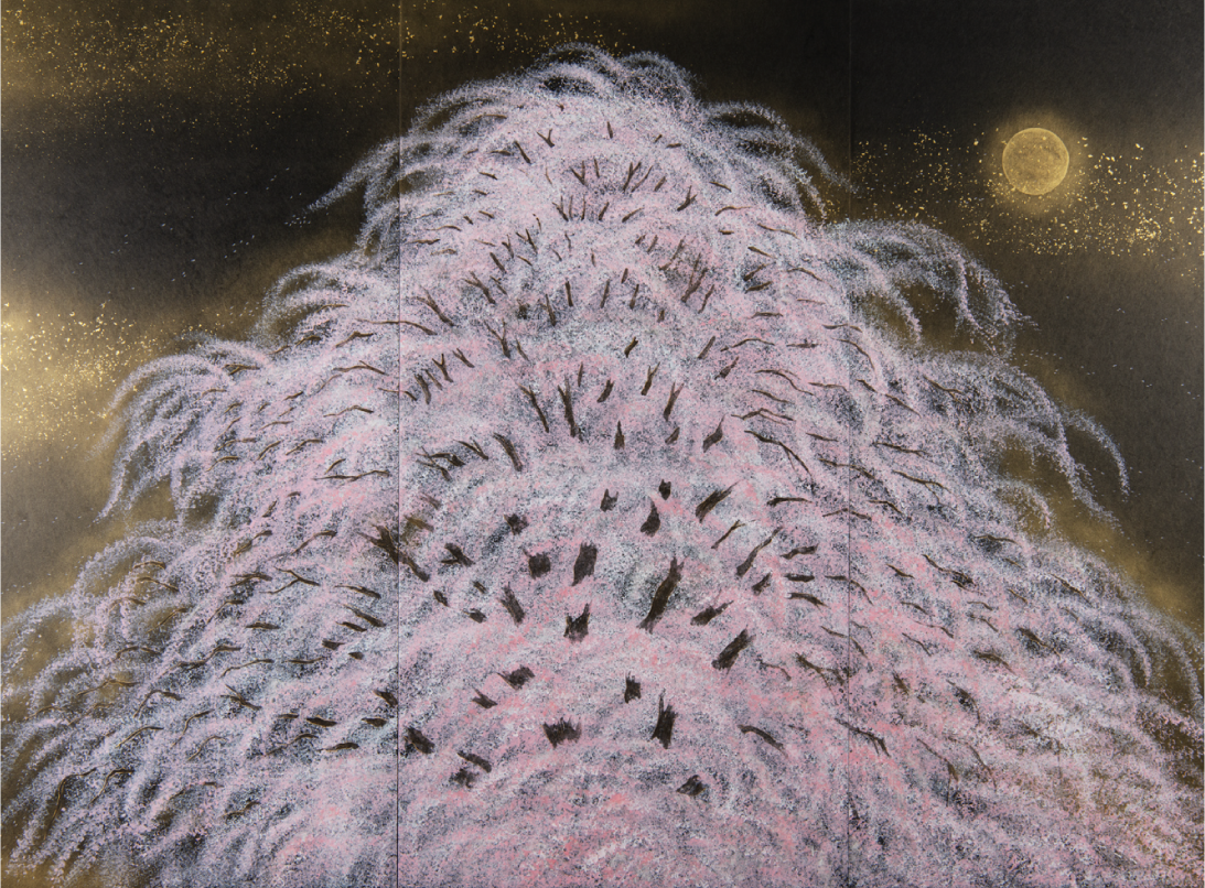 福井江太郎氏による幻想的な日本画、月夜に照らされた夜桜。銀モミ和紙の洗練された空間に咲き誇ります。美味なるひとときを、より記憶に残るものに昇華させる−−。接待や記念日など、少人数でのプライベートなお集まりにご利用ください。(定員: 5名)